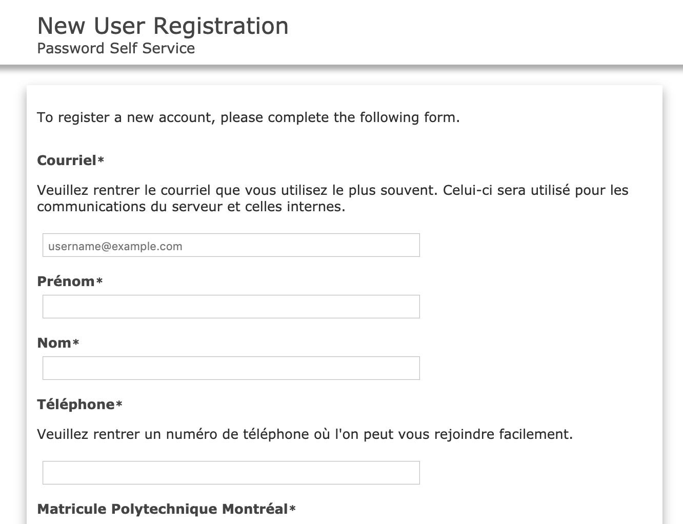 Il arrive que vous devez changer vos informations personnelles. Ces informations peuvent être modifié sur la page de gestion de compte. Vous pouvez vous connecter avec votre username. La connexion avec le courriel est fonctionnel sur certain services seulement. Le nom d'utilisateur Formule Polytechnique Montréal est à privilégier.